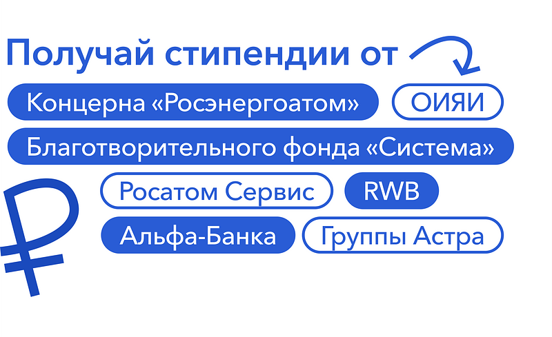 Твоя финансовая опора в учебе и пропуск в мир больших возможностей. Подавай заявку, проходи отбор и доказывай свой потенциал: работодатели уже присматриваются к стипендиатам!
